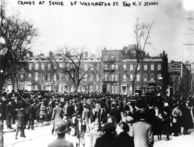 March 26, 1911 crowds gathered at the sight of the fire in grief trying to face the reality of their lost friends and family.